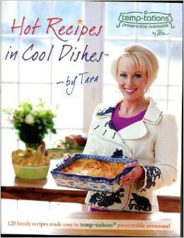 Tara's original, best-selling cookbook is now exclusively available here! Hot Recipes in Cool DishesTM - by Tara features 120 delicious family recipes specifically created for temp-tations®. With this cookbook in hand and temp-tations® in your kitchen, you'll enjoy cooking again, simplify your life, and create a beautiful presentation on your table. This cookbook is full of easy to make, one-dish recipes featuring prep time, cook time, number of servings, the temp-tations® dish size to cook in, a shopping list, and substitution tips. There's also a Menu Planner section for parties!